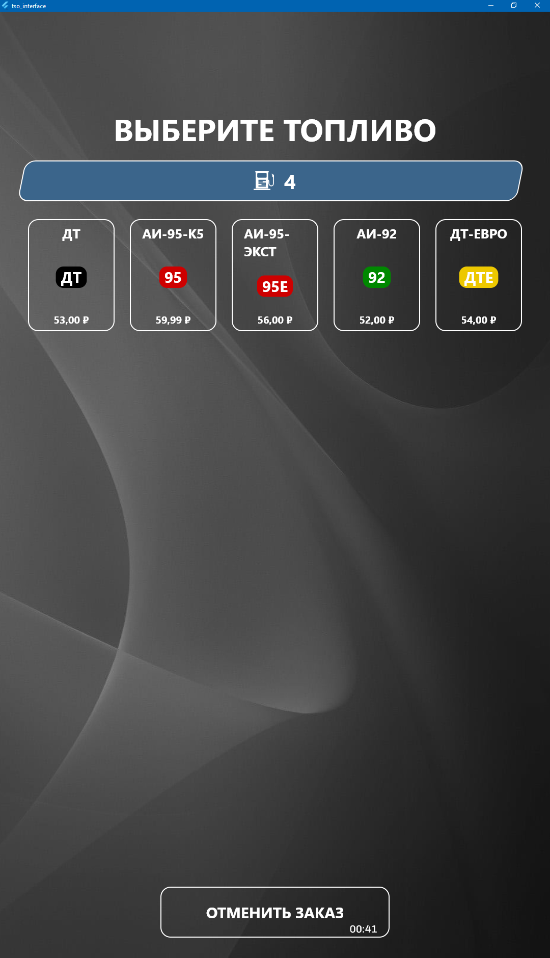 Самостоятельное оформление заказа на топливо с выбором ТРК, вида топлива.