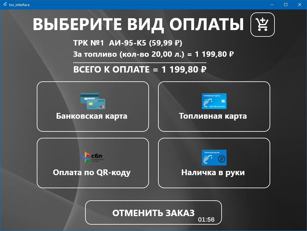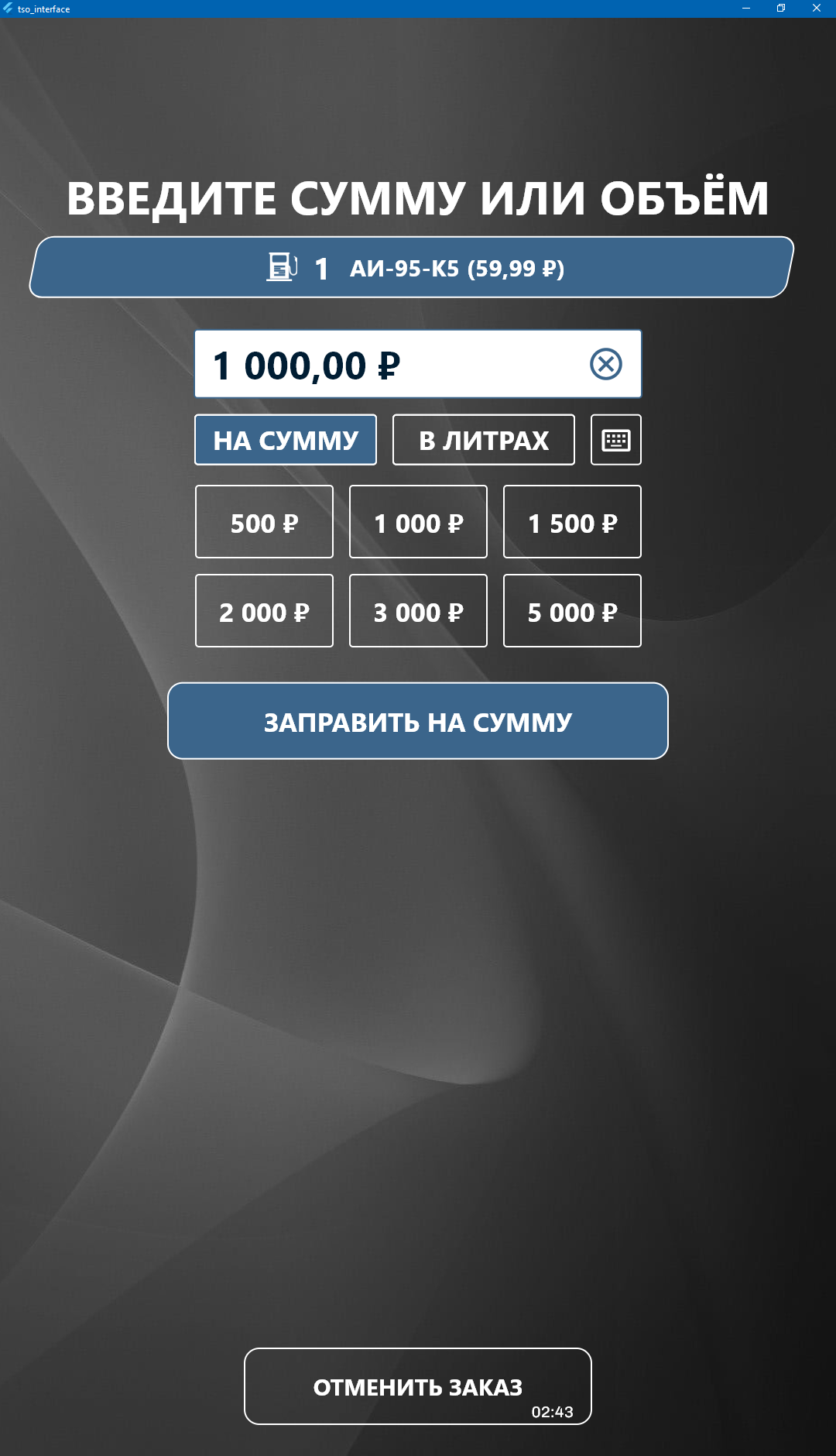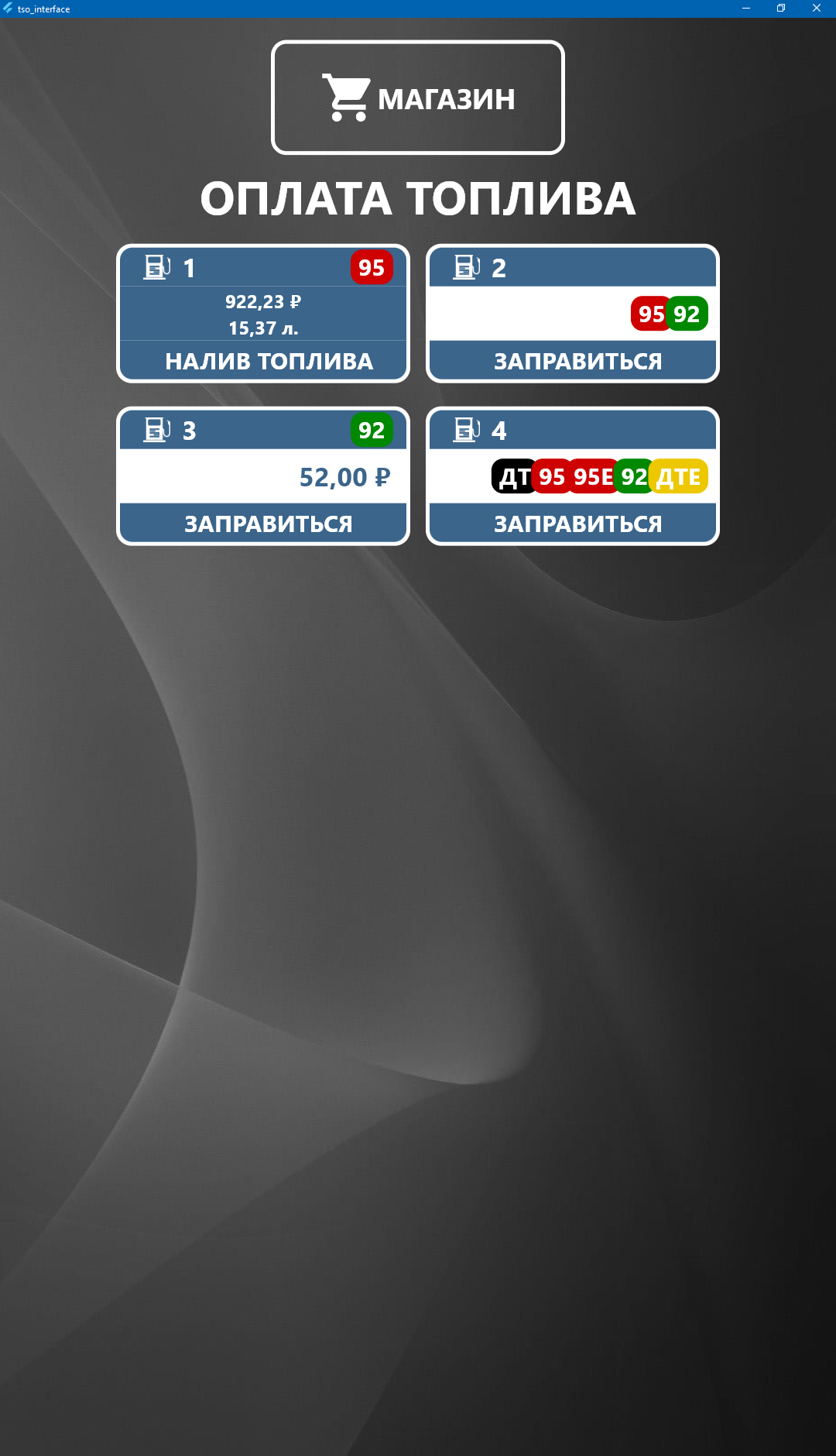 Самостоятельное оформление заказа на топливо с выбором ТРК, вида топлива.